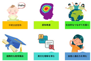 非常に若い頃から英語を学ぶことでは多くのメリットがあり、 その主の理由として;